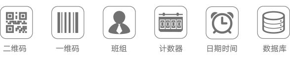 包含文本、日期时间、班组、计数器、公司信息文本、数据库文本、动态文本、 数据库图片、动态图片、公司logo |